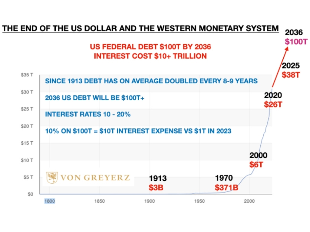 And that condition is increasingly defined by one factor: debt. Over the past decades, US debt has not grown in a steady or controlled manner but exponentially, doubling on average every eight years regardless of the political cycle. This is not a temporary imbalance but a structural trend, and its implications are profound. To understand where gold and silver are going next, we must first look directly at how this system has evolved. The chart in front of you makes that reality unmistakably clear.